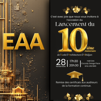 L’École d’Architecture d’Abidjan (EAA) s’apprête à écrire une nouvelle page de son histoire. Le 28 novembre, de 17h30 à 20h30, le Hall de l’EAA à...
